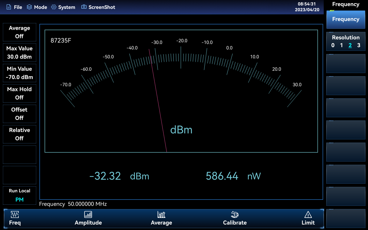 | Reference Level | Range: -150 dBm ~ +30 dBm, min step 1dB Conversion error: ±0.50dB (reference level 0 dBm~-60 dBm) |