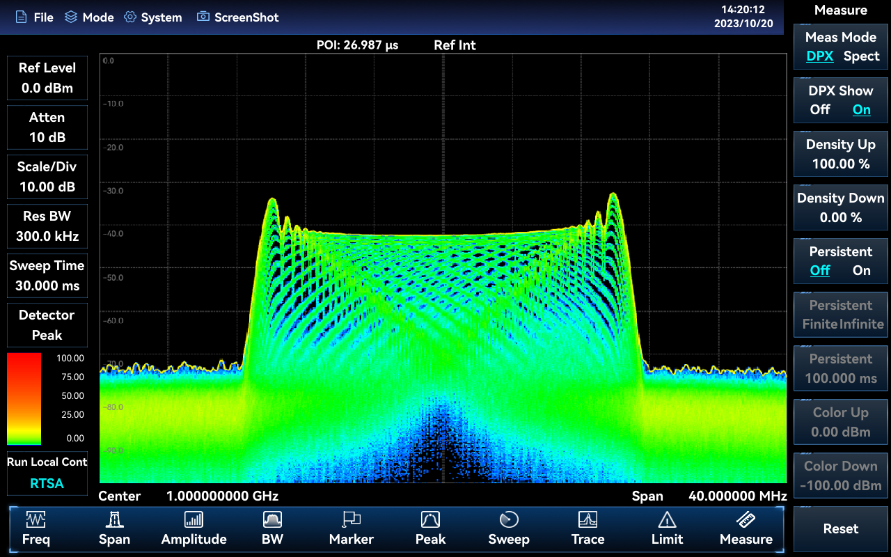 The real-time spectrum analyzer is mainly used for the capture and analysis of transient time-varying signals and burst signals. The real-time analysis bandwidth is up to 40MHz, which can realize the digital afterglow and waterfall plot measurement function of transient signals.