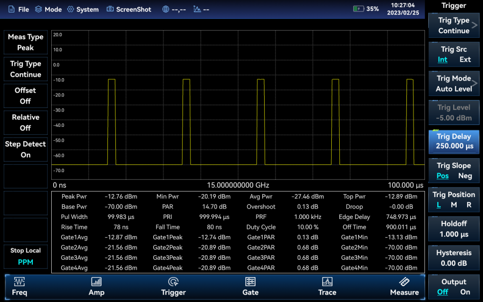 4025 spectrum analyzer connects 87234D/E/F/L USB peak power sensor through a USB interface, which can test RF/microwave signals up to 67GHz, and realize pulse power measurement in a large dynamic range.