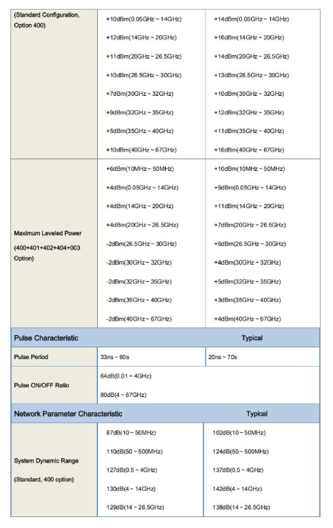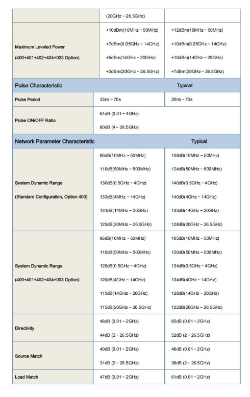 Source modulation sources include multiple states such as rear panel input, internal pulse generator, normally open and normally closed. The source of the vector network analyzer can be modulated by external pulses or modulated by an external modulator and measured by triggering the synchronization mode. The pulse S parameter measurement function provides strong support for the test of radar T / R components and antenna signal and transceiver module.