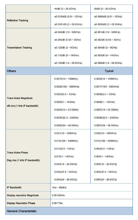 The noise coefficient and the noise parameters can be tested simultaneously, including the amplitude and phase of the minimum noise coefficient, the noise internal resistance and the optimal reflection coefficient.